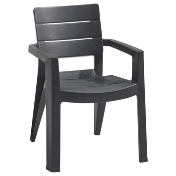 Wil jij een strakke, moderne blokstoel in je tuin? Ga dan voor de Allibert stapelstoel Ibiza antraciet. De stoel is gemaakt van kunststof, dus sterk met een draagvermogen van 110 kg, licht van gewicht en makkelijk schoon te maken. Dankzij de speciale afwerking heeft deze stoel een ‘houtlook’ en is daarom erg goed te combineren met een houten tuintafel. De grafietkleur maakt de stoel stijlvol van karakter en passend in vrijwel iedere tuin. Dankzij de rugleuning en armleuningen zit de Ibiza-stoel erg comfortabel en bovendien neemt de stoel weinig ruimte in beslag, aangezien deze stapelbaar is. Je bergt ze binnen een mum van tijd op. Zoek je een andere kleur? Dat komt goed uit, want GAMMA heeft deze Ibiza-stoel ook in een beige en groene variant. Kortom: comfortabel zitten doe je op de deze stoel uit de Ibiza-lijn.