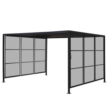 Het paviljoen beschikt over een schuifbaar dak een zonwerend doek, hiermee kun je schaduw creëren waar je maar wilt. Deze tuinpaviljoen is voorzien van een stevig staal gecoat frame met poten van 5×5 cm. De nokhoogte is 210 cm.
